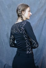 A RAYA longsleeve crafted from a light black cotton stretch detailed with a abstract golden triangle pattern.
