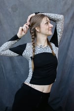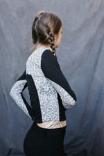 A RAYA longsleeve crafted from a light black cotton stretch detailed with a semi transparent grey leo pattern