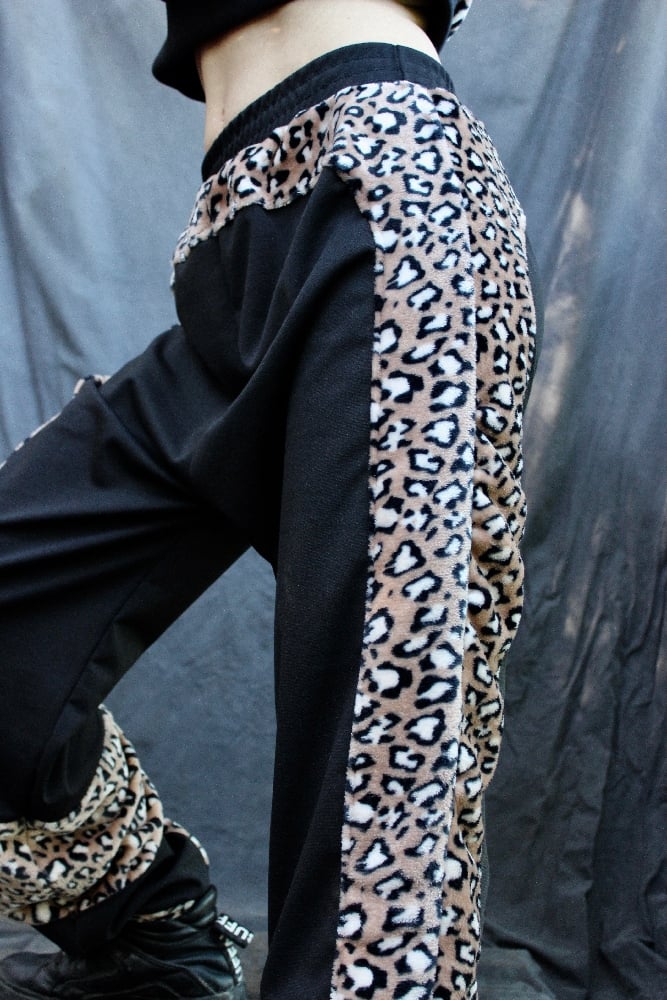 RAYA Tracksuit Pants detailed with a leopard fluff pattern.